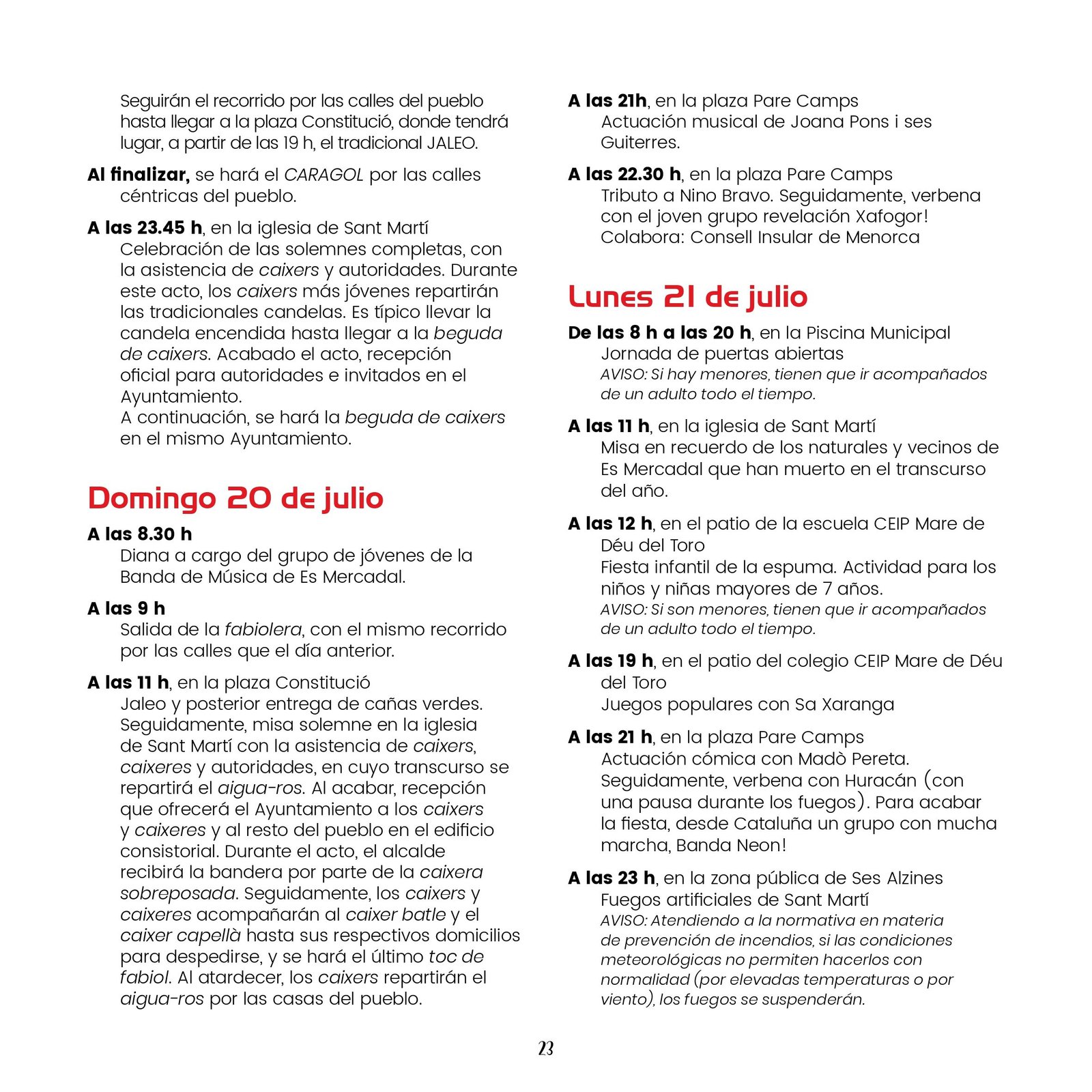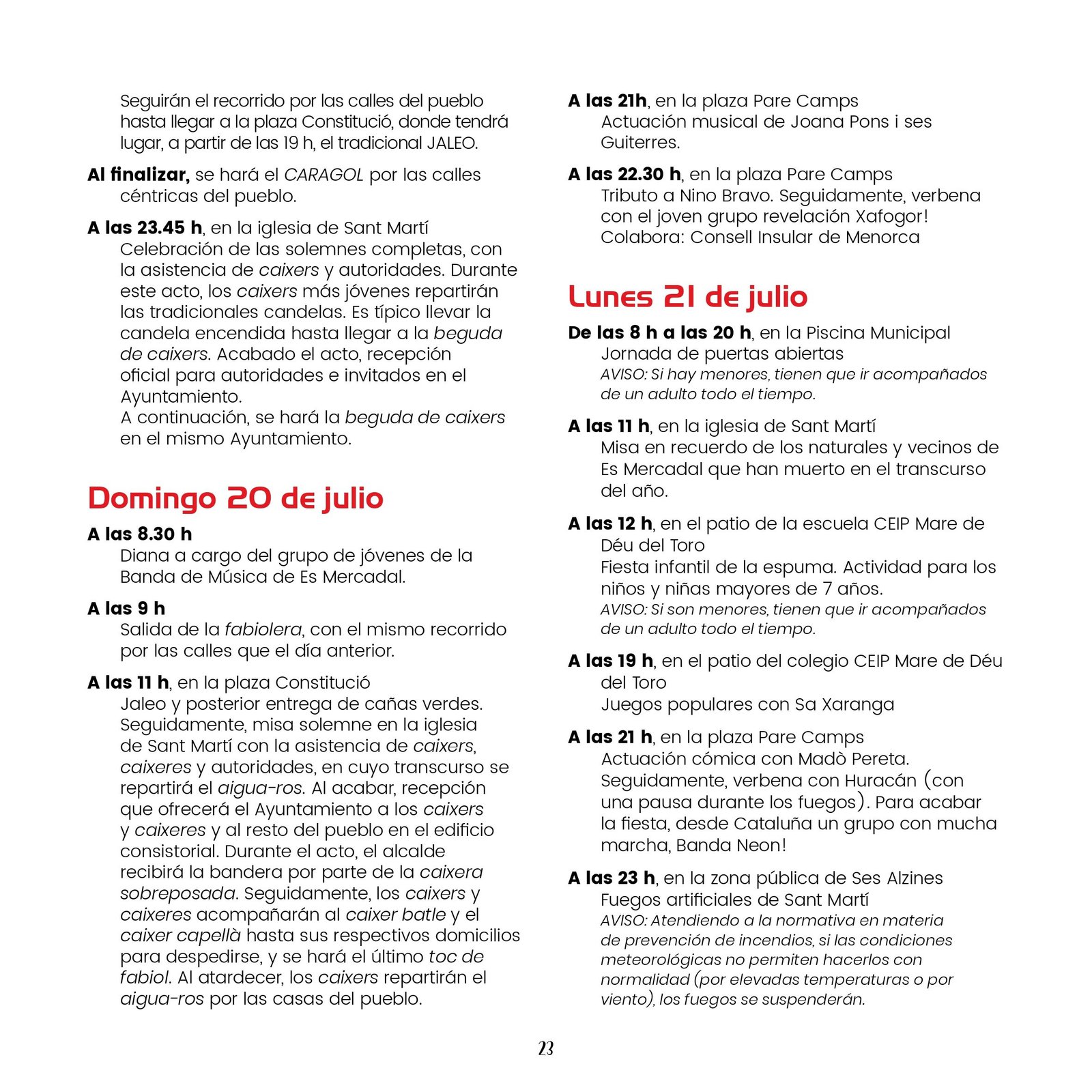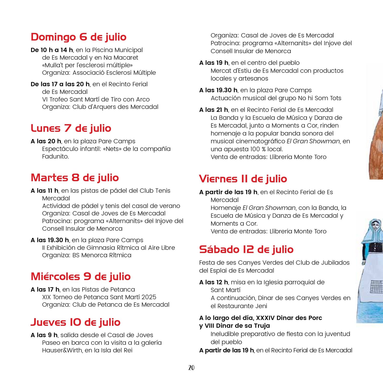 Los próximos días 19, 20 y 21 de julio se celebran las fiestas de Sant Martí en Es Mercadal. Comienzan con un variado programa de eventos culturales, deportivos y musicales que se desarrollan entre los días 30 de Junio y 21 de julio. Pueden consultarlo a continuación: