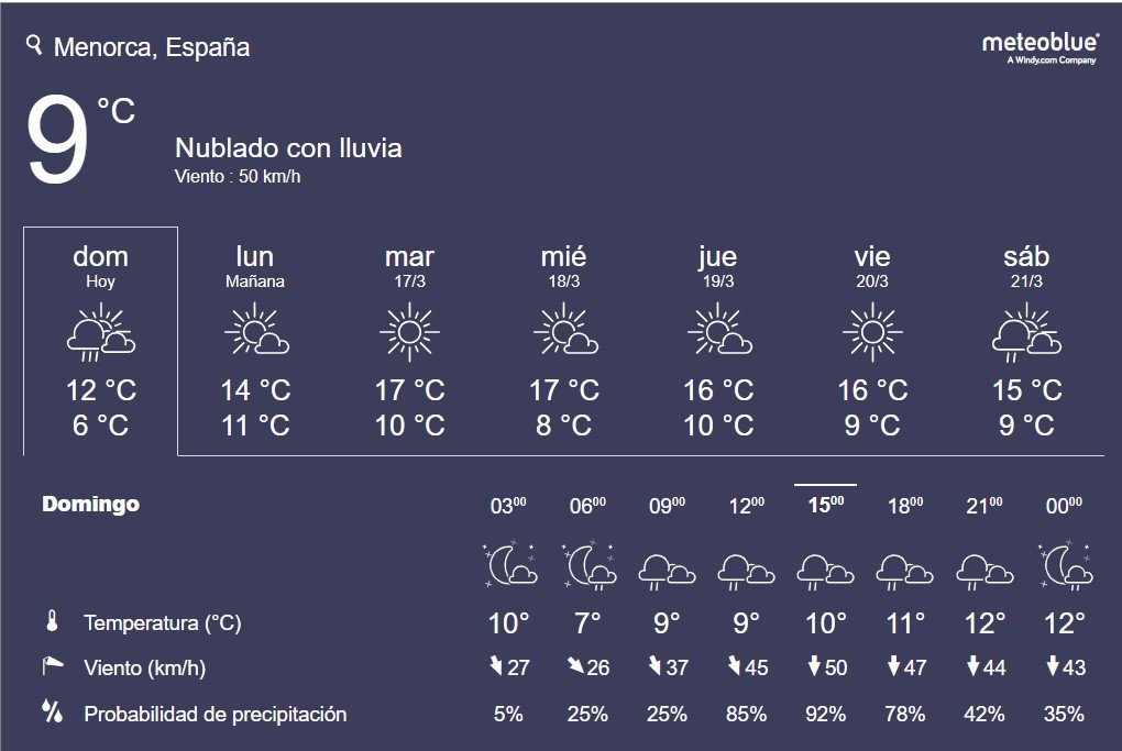 El Tiempo en Menorca – Predicción Meteorológica para los próximos días. Datos de la estaciones meteorológicas ubicadas en el aeropuerto de Menorca y en La Mola del puerto de Mahón. …