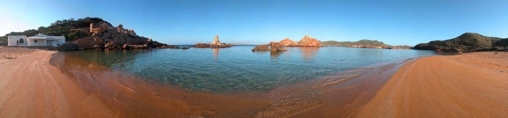 Siguiendo el «Camí de Cavalls» desde la playa de Binimel.la en el municipio de Es Mercadal, se puede llegar a una de las calas más bonitas de la costa norte, Cala Pregonda.