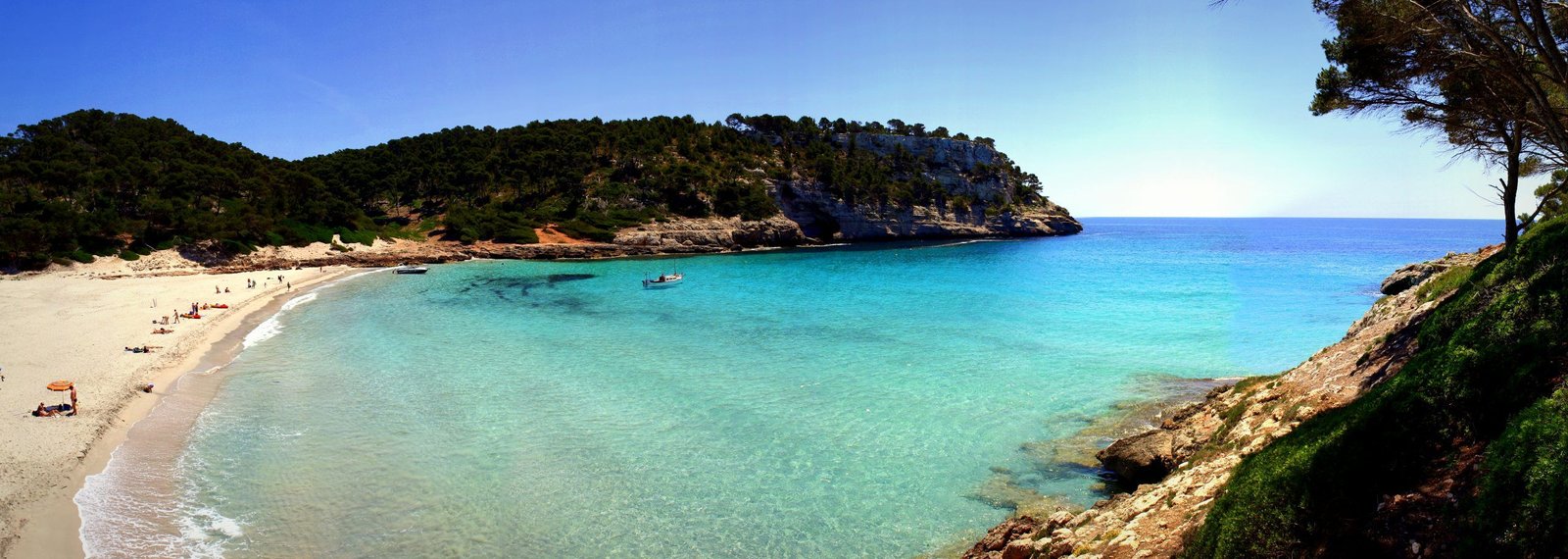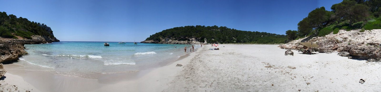 Rodeada de pinos y una frondosa vegetación a pie de playa, de arena blanca y fina, aguas azules y cristalinas que parecen una gran piscina natural, en la que tienes que entrar bastantes metros hacia adentro para que te cubra el agua.