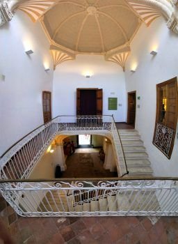 Destacan el vestíbulo de la entrada y la escalera principal que conducen al piso superior donde encontramos una gran sala noble que da a la fachada principal, decorada con motivos florales.