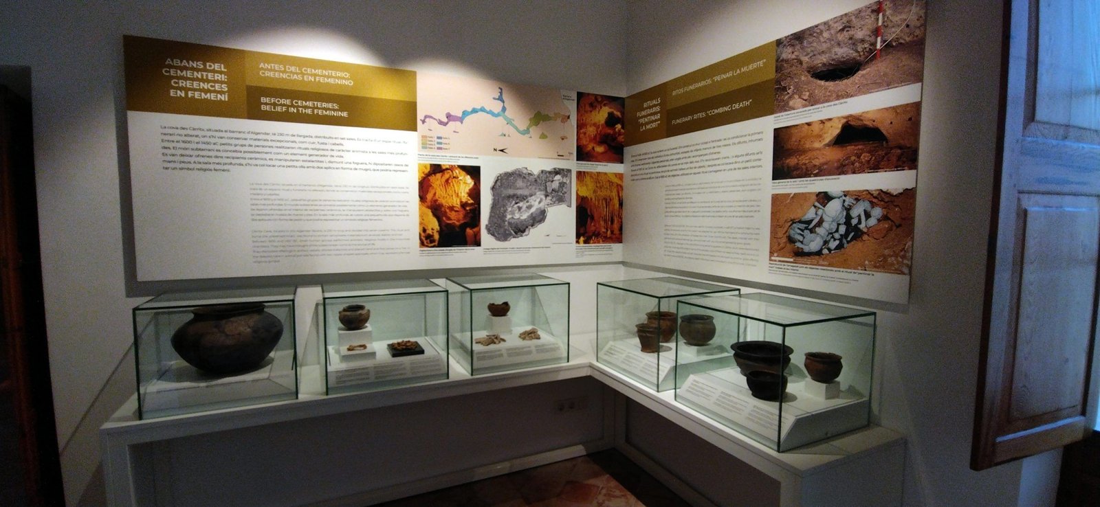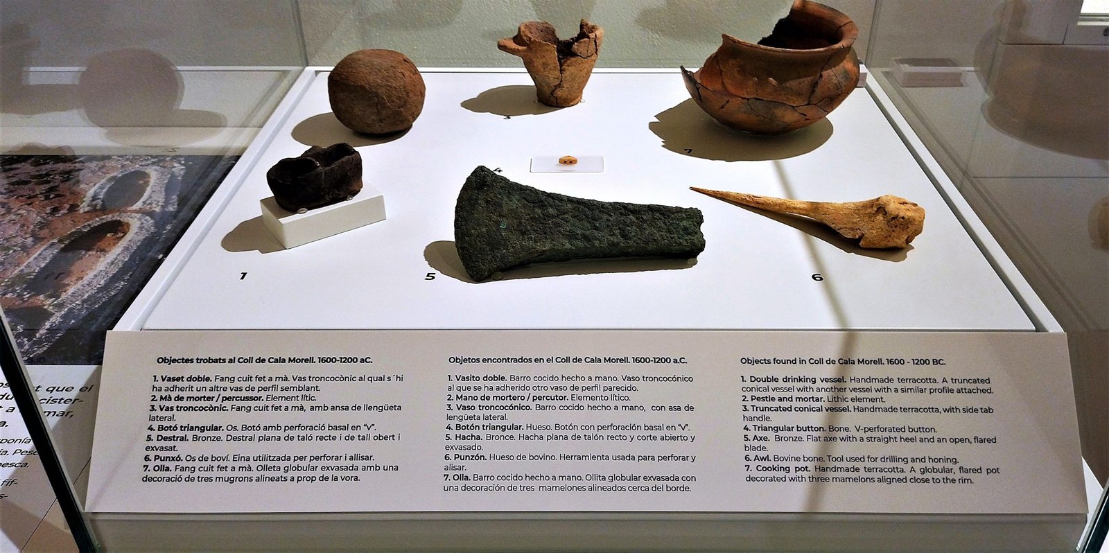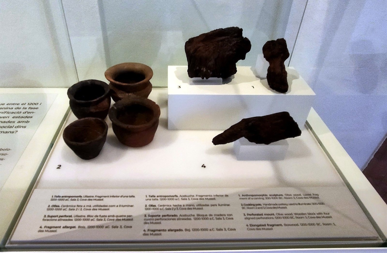 También pueden verse los extraordinarios hallazgos de las cuevas del carritx i des Mussol: objetos de madera, de hueso, cabellos humanos y figuras humanas y zoo-antropomorfas de madera.