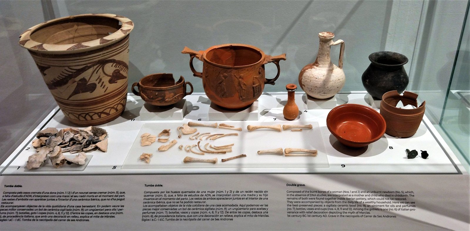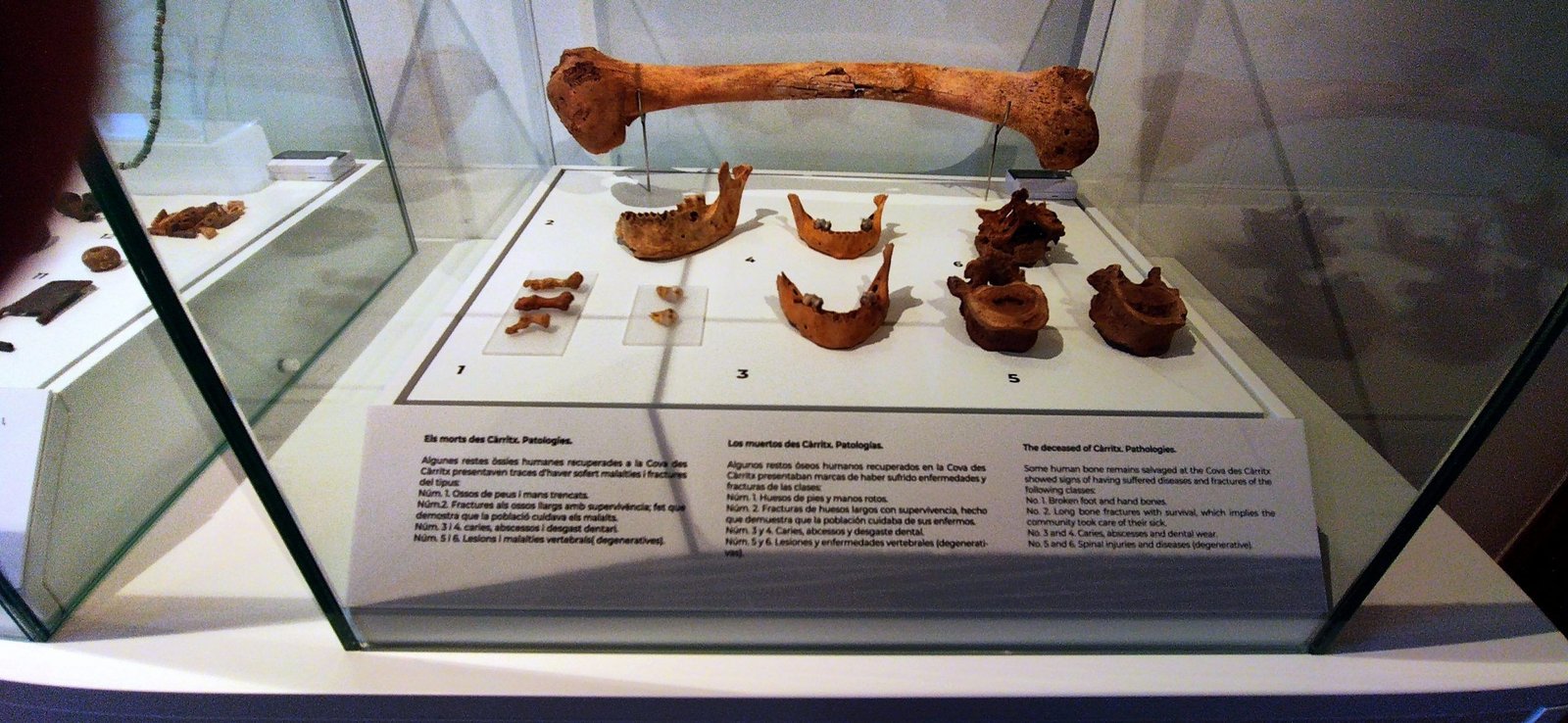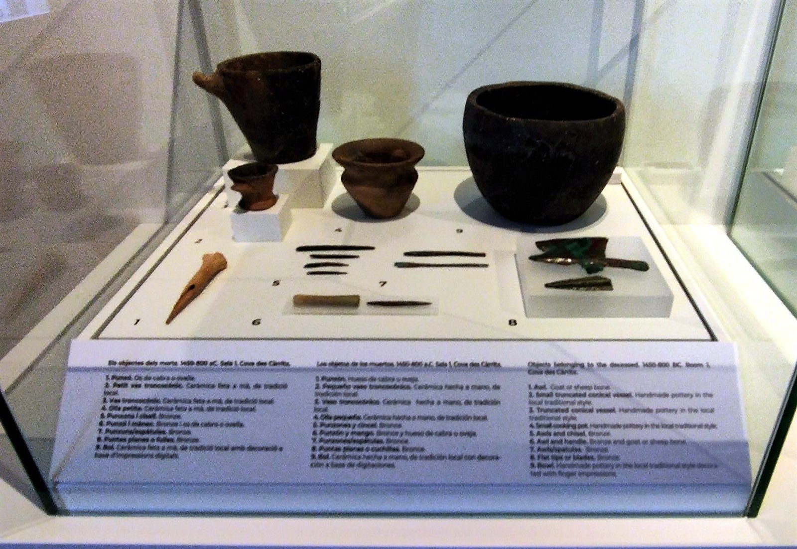 También pueden verse los extraordinarios hallazgos de las cuevas del carritx i des Mussol: objetos de madera, de hueso, cabellos humanos y figuras humanas y zoo-antropomorfas de madera.