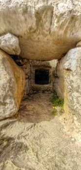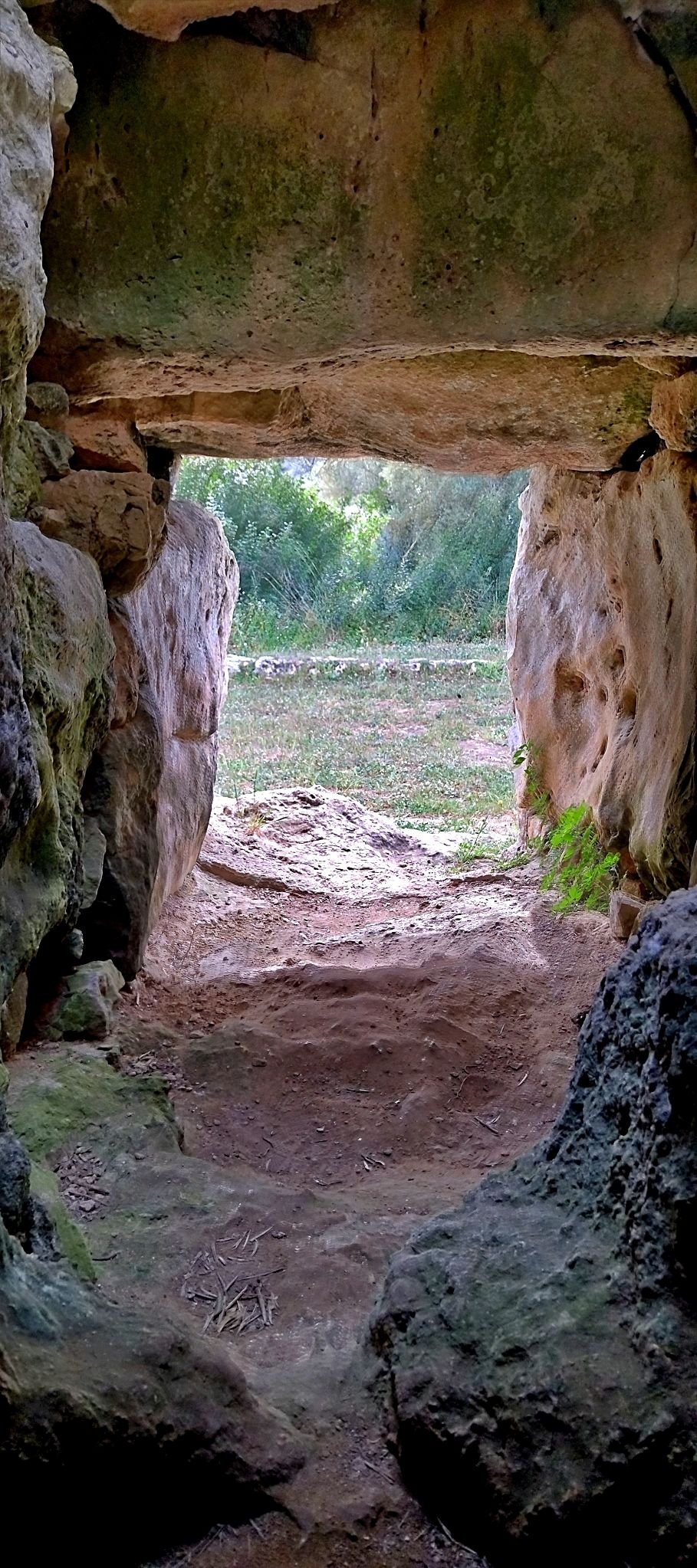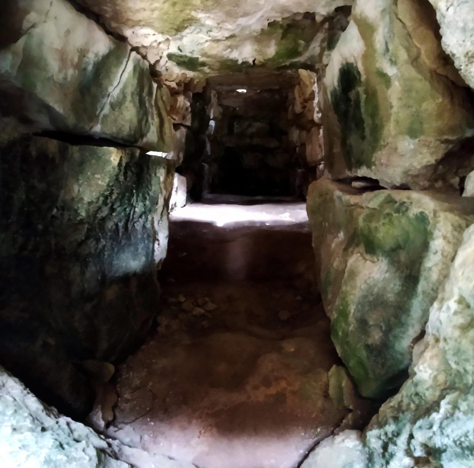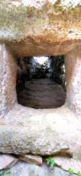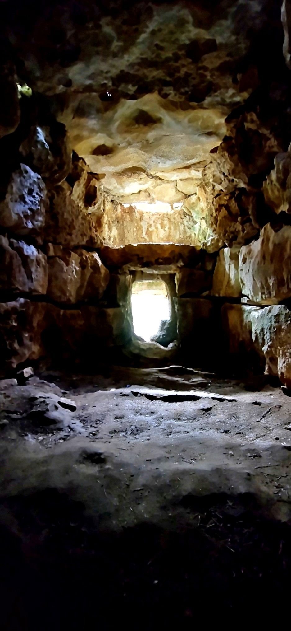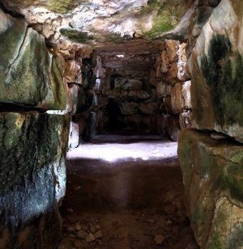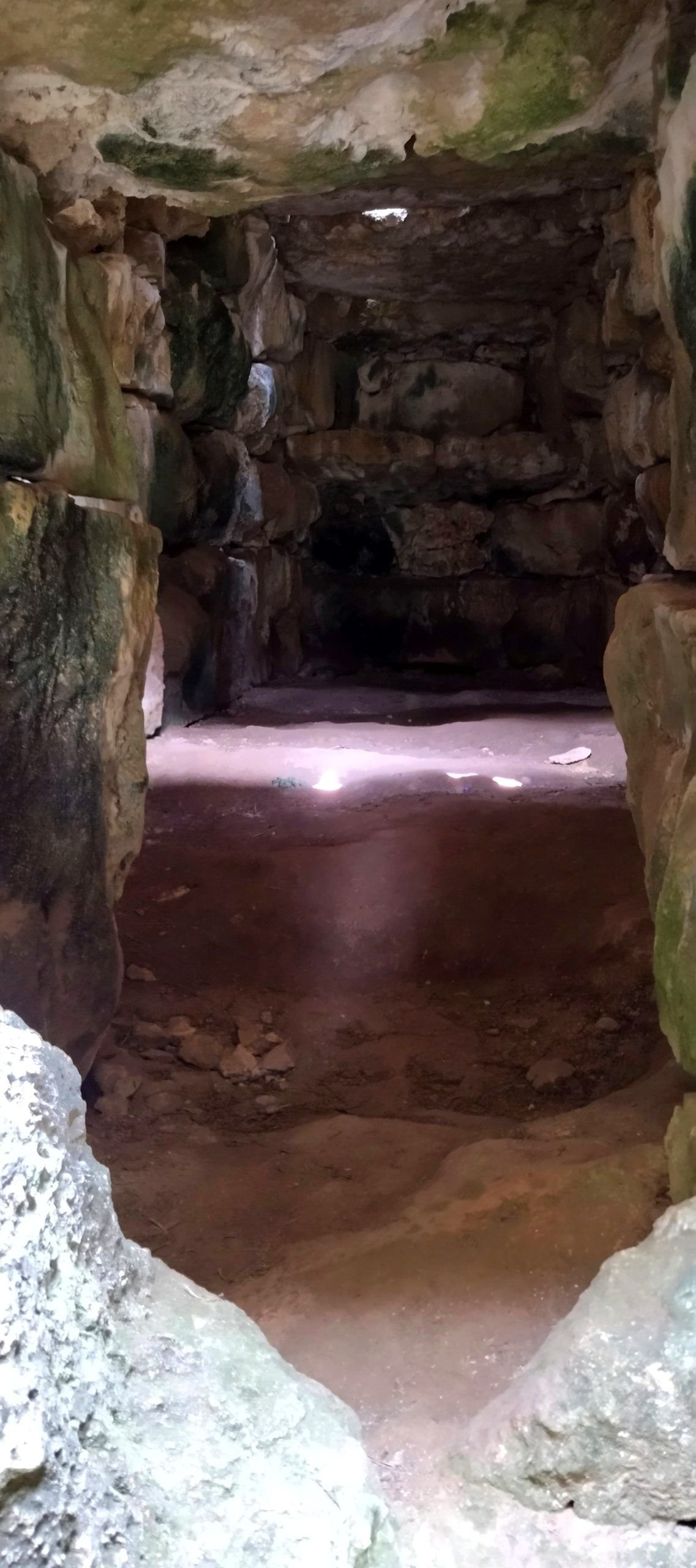 Los cuerpos eran introducidos a través del estrecho corredor. Los que iban al piso superior se subían por la chimenea y los que se inhumaban en la habitación inferior eran introducidos a través de la losa perforada que le da acceso. El rebajo que hay alrededor del agujero indica que después se colocaba algún elemento de cierre de madera o piedra.