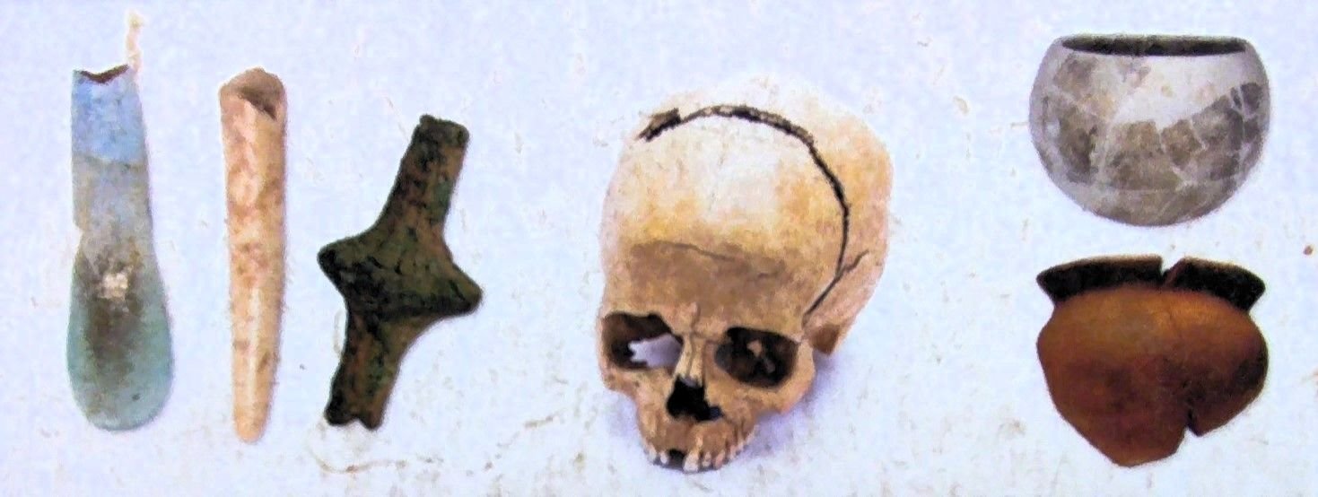 El sedimento interior estaba totalmente removido y muchos restos habían desaparecido. A pesar de ello, se recuperó un conjunto de huesos que corresponden a un mínimo de 19 individuos, entre hombres, mujeres y niños. Si lo comparamos con otros sepulcros de la isla, podemos pensar que originalmente se inhumaron más de un centenar de personas