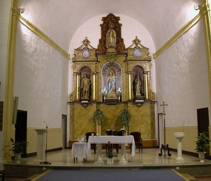Se trata de un templo espacioso y de sencillas líneas con claras reminiscencias renacentistas que le confieren un aspecto elegante. La cubierta es de Bóveda de cañón y con una magnífica iluminación gracias a las vidrieras que se encuentran en la parte alta.