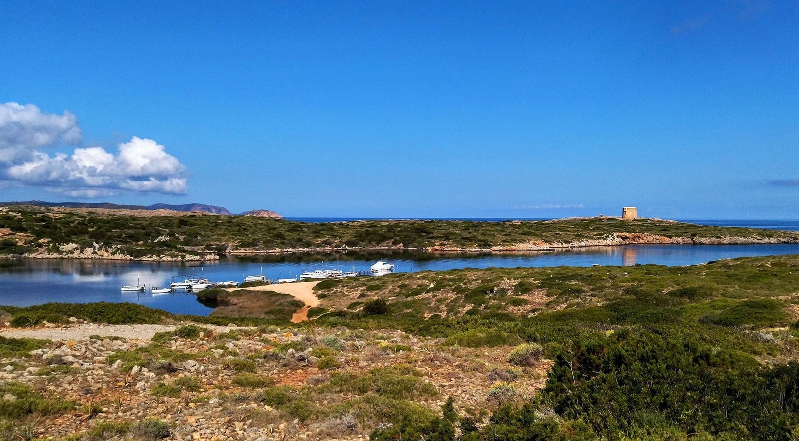 Al final del camino, justo antes de llegar al faro de Cavalleria, encontrarás una pista de tierra que conduce hacia el puerto de Sa Nitja.